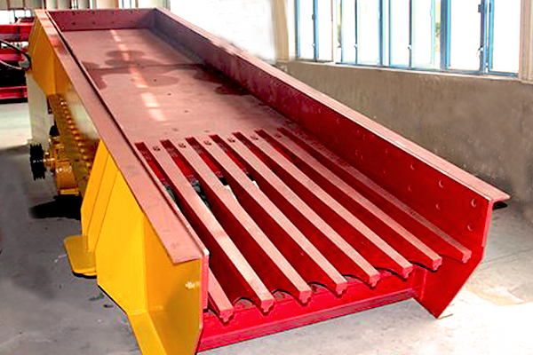 棒條式振動給料機在工作過程中可把塊狀、顆粒狀物料從貯料倉中均勻、定時、連續(xù)的送入受料裝置,在沙石生產(chǎn)線中可為破碎機械連續(xù)均勻的喂料,并為物料進行粗篩分。其適用于破碎機前大塊物料的均勻給料。特別適用于黑色或有色金屬礦石、建筑石料粗碎前的給料,是粗碎破碎機前配套給料的理想設(shè)備。